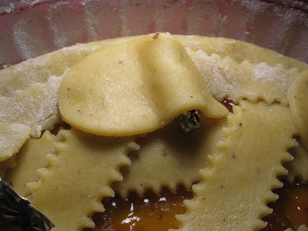 Decorare con strisce di pasta e con delle foglie ricavate con un tagliabiscotti inserendo sotto ognuna un pezzetto di carta d'argenro per evitare che si appiattiscano......